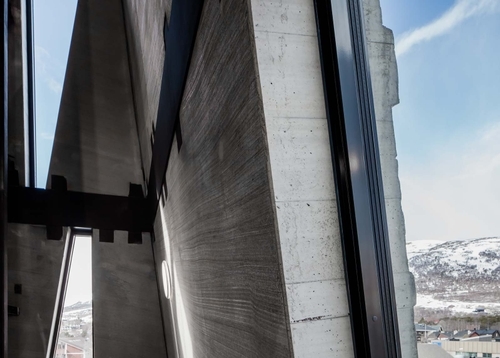 Det estetiske utrykket som var ønsket er utfordrende å løse. Da valget falt på sandwichelementer med stålrammer innfelt dukket flere utfordringer opp. De skrå og knekte fasadene må regnes som tak og gir utfordringer med tanke på sammenføyninger rent geometrisk. I fasaden gir store krav til inndeling og samstemthet som også skal vise en slags naturlig uorden slik man finner i et fjell. I tillegg til dette kommer produksjonsutfordringer, transport og montasjeutfordringer samt tetthet i sammenføyningene.
